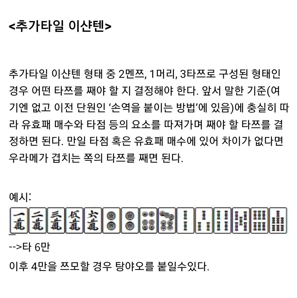 용어가 좀 옛것같지만 의외로 목차 보니까 마작의 진행부터 다면대기 형태나 스지이론, 패효율 같은 부분까지 설명해주나봄