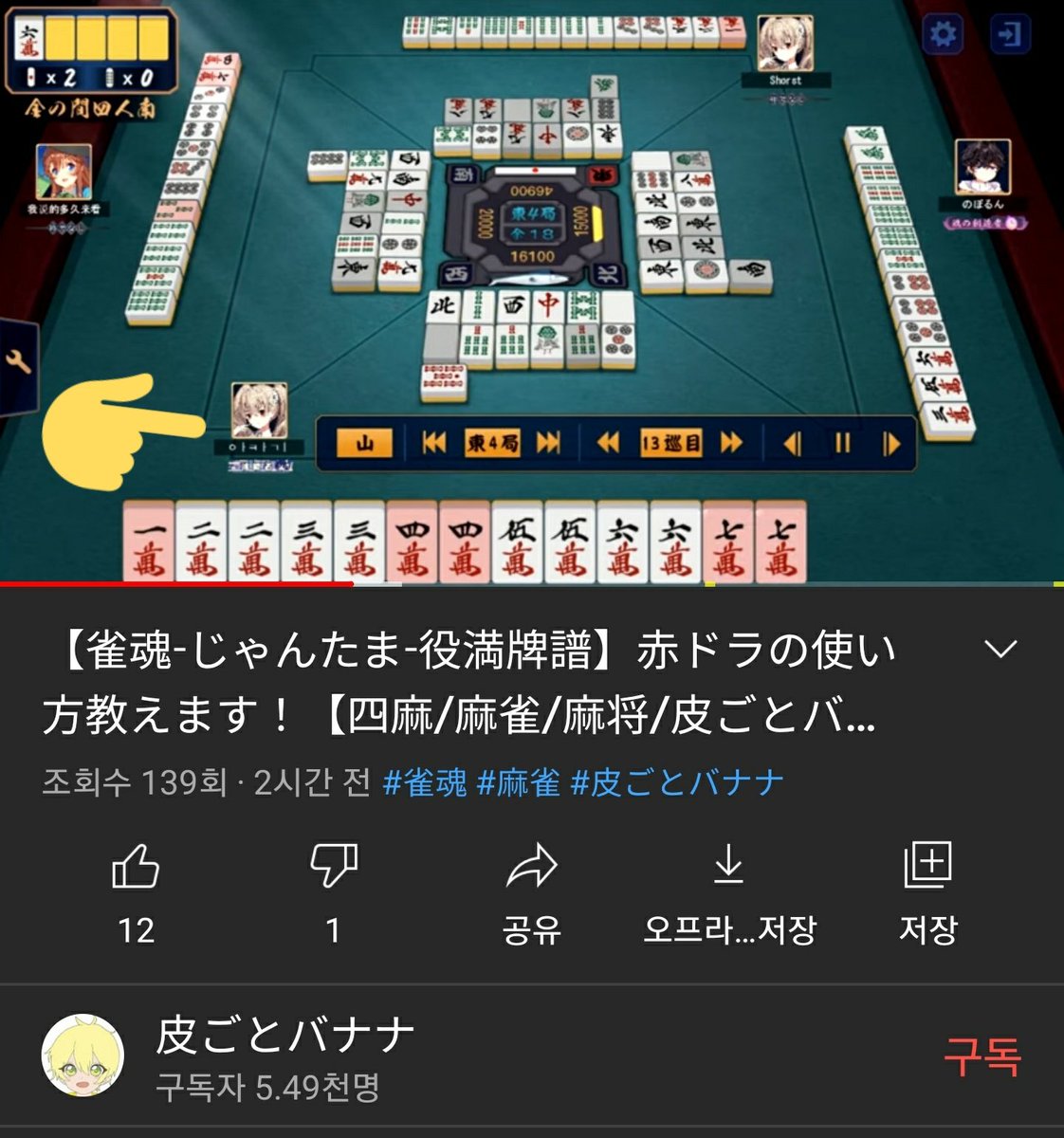 그런 의미에서 꽤 길어질 듯한 마작 트윗 모음입니다. 잘 부탁드립니다.