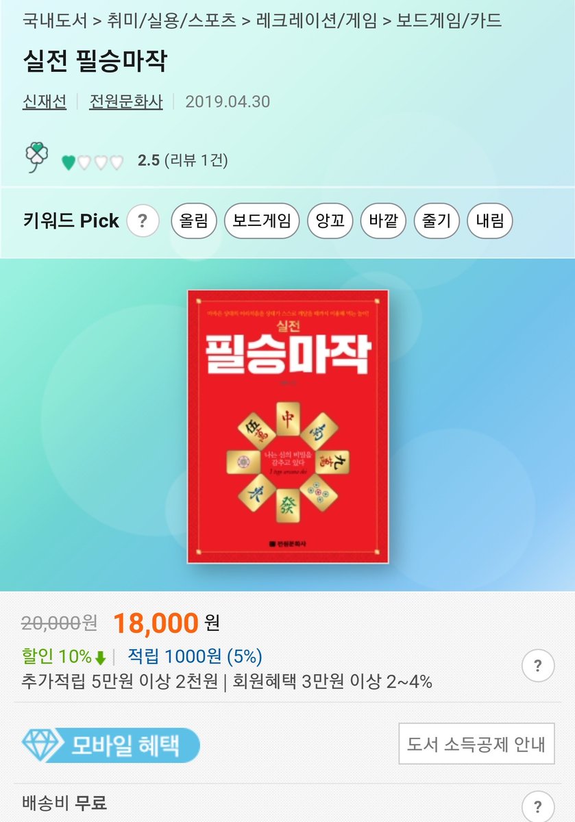 나 실전 필승마작 교보에서 한권 찾았는데