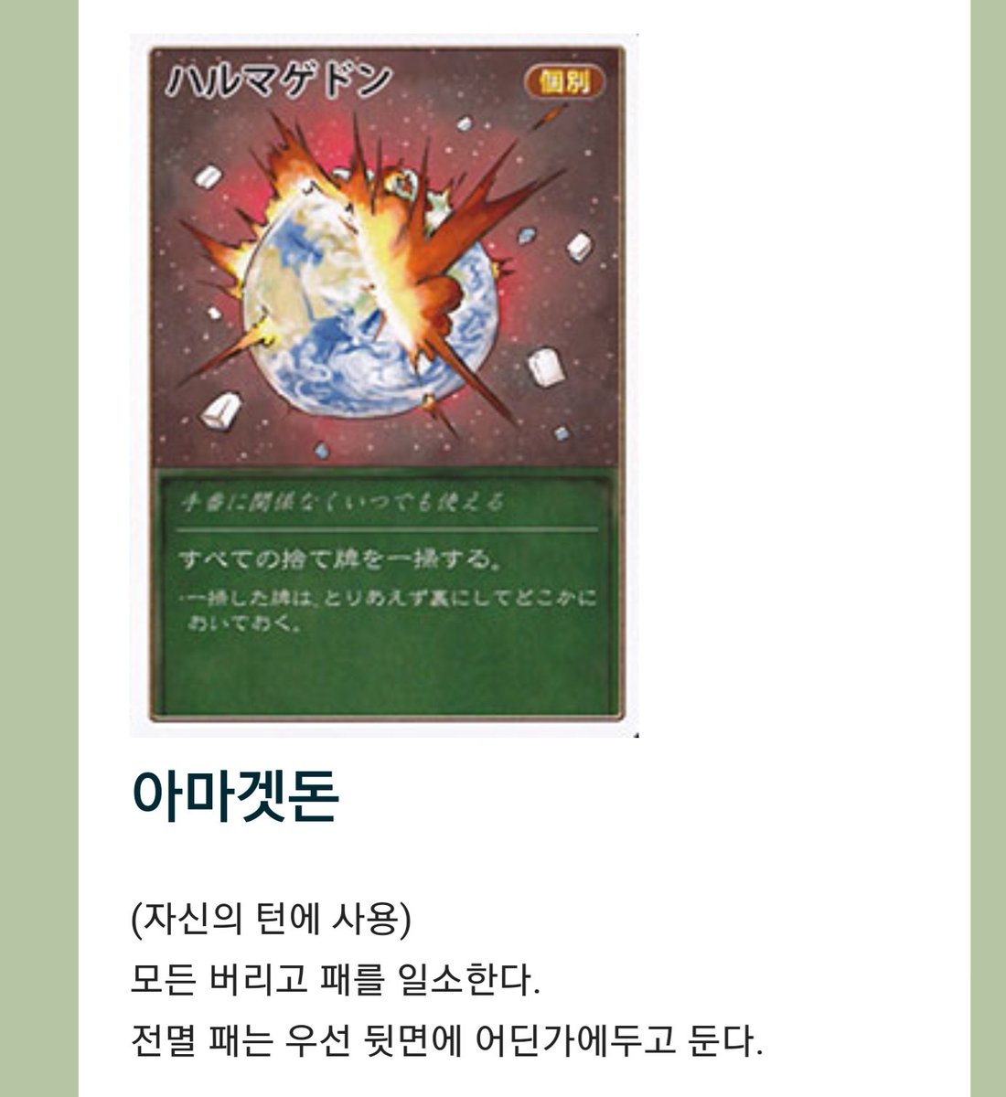 빅뱅임팩트: 패산에서 패 4장을 뽑아 공개한 뒤 파괴해서 없앤다
