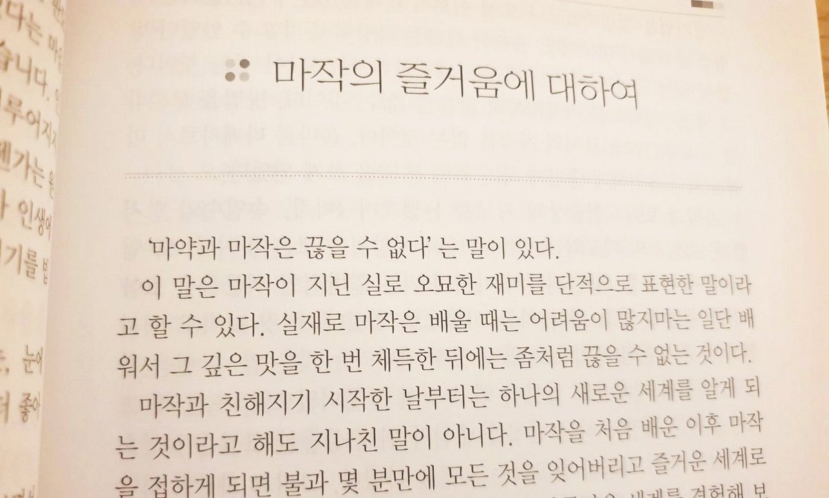 저자분이 원래 시인이시라 이분이 쓰신 마작시집도 있는데 (절판이라 읽어보진 못했는데 내용이 궁금)