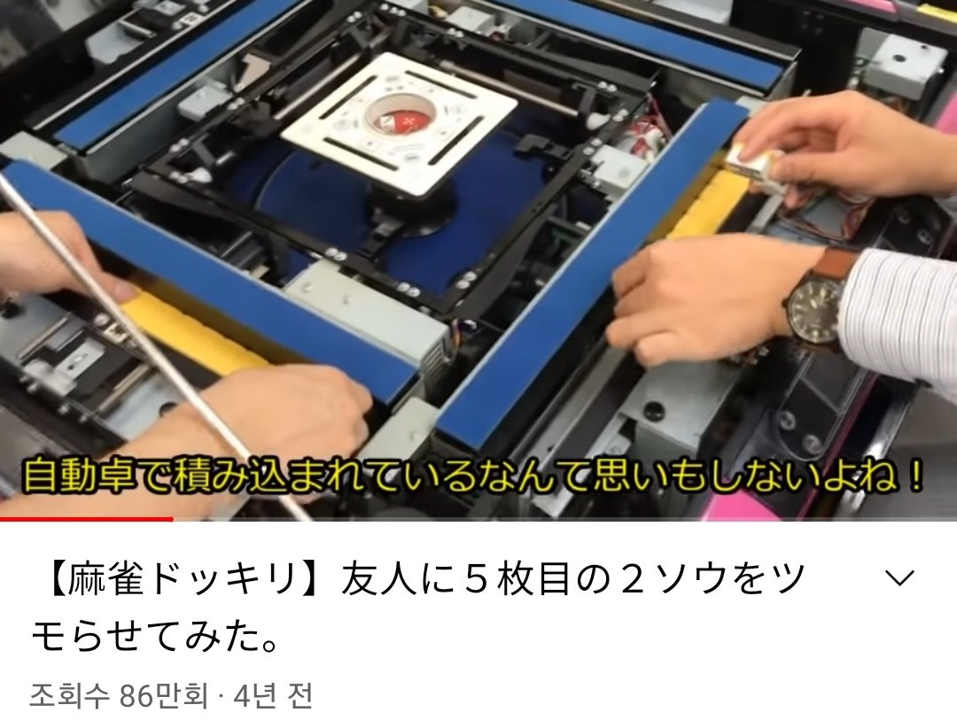 그러고보니 그 유명한 마작유튜버 영상 중에 전탁 조작해서 몰래 2삭 다섯개 넣고 상대 반응 지켜보는 영상 있었는데