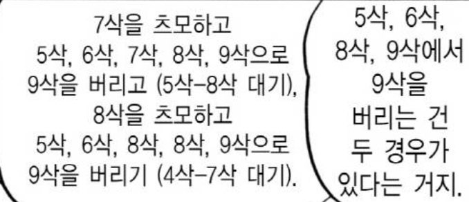예를 들어 상대가 5삭을 버렸다면 위로 두칸(8삭) 아래로 두칸(2삭)