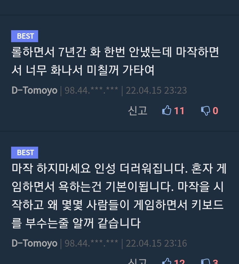 탐라 마작인들 이상한 마작꿈 꾼 썰 전부 모으면 웃길 것 같다