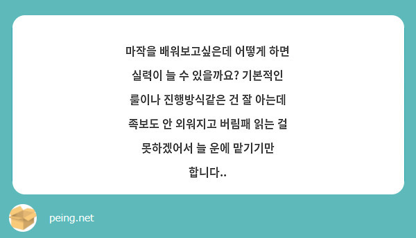 마작 배우는 것보다 같이 칠 사람 네명 구하는게 더 힘들어