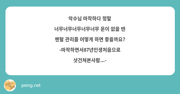 저 같은 경우 흐름을 욕하고 싶을 때 "이건 정말로 순수하게 운이 나빴기 때문인가? 혹시 나는 평정심을 잃은 게 아닐까?" 를 한번 짚고 넘어가곤 합니다