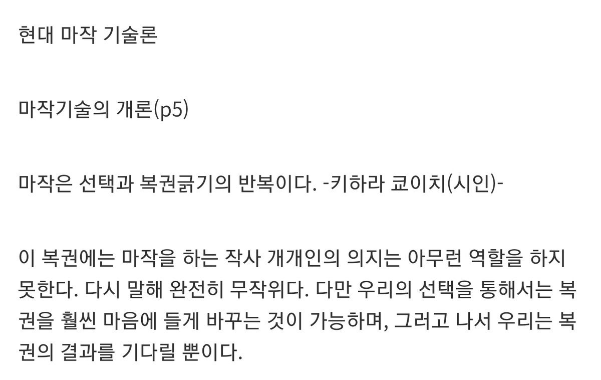 "그날따라 마작이 미친듯이 안쳐져서 운 더럽게 없네 라고 욕했는데 나중에 패보를 검토해보니 운빨이 문제가 아니라 나의 문제였다" 같은 경험이 개인적으로 꽤 있었거든요...