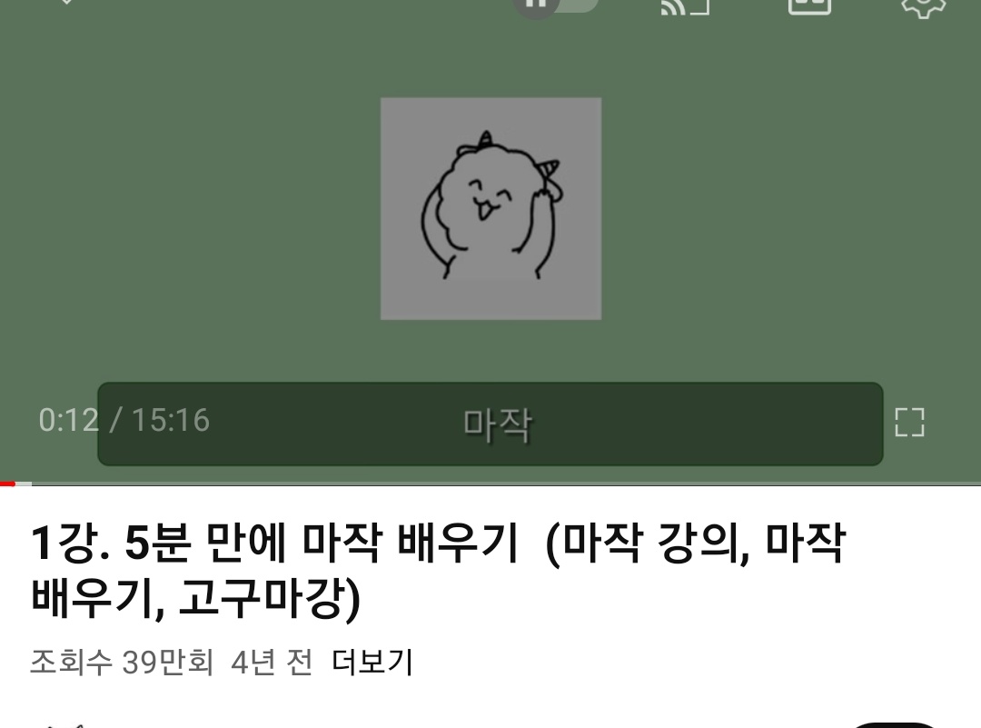 지금 5분만에 배우는 마작영상 이런거 급하게 찾아보고있는데 5분만에 알려준다고해놓고 영상길이 다 이모양이어서 미치도록 킹받음