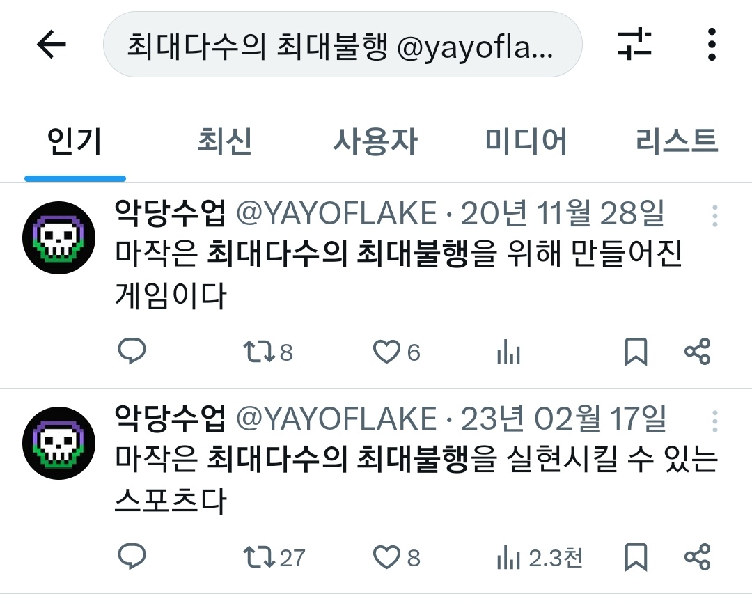 최대다수의 최대불행 이라고 서치하면 언제언제 마작에서 졌는지 한눈에 보여서 아주 편리하다고 생각