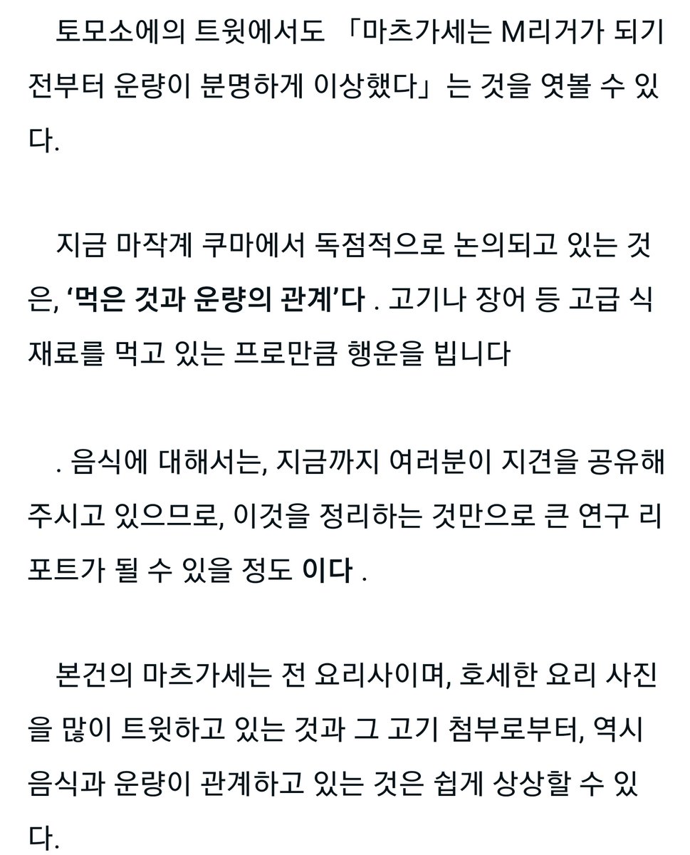 M리그에서는 한 프로 선수가 연어알 섭취를 통해 평균적인 적도라 쯔모 확률을 높이는 시도를 하여 논란이 되었다고 합니다...
