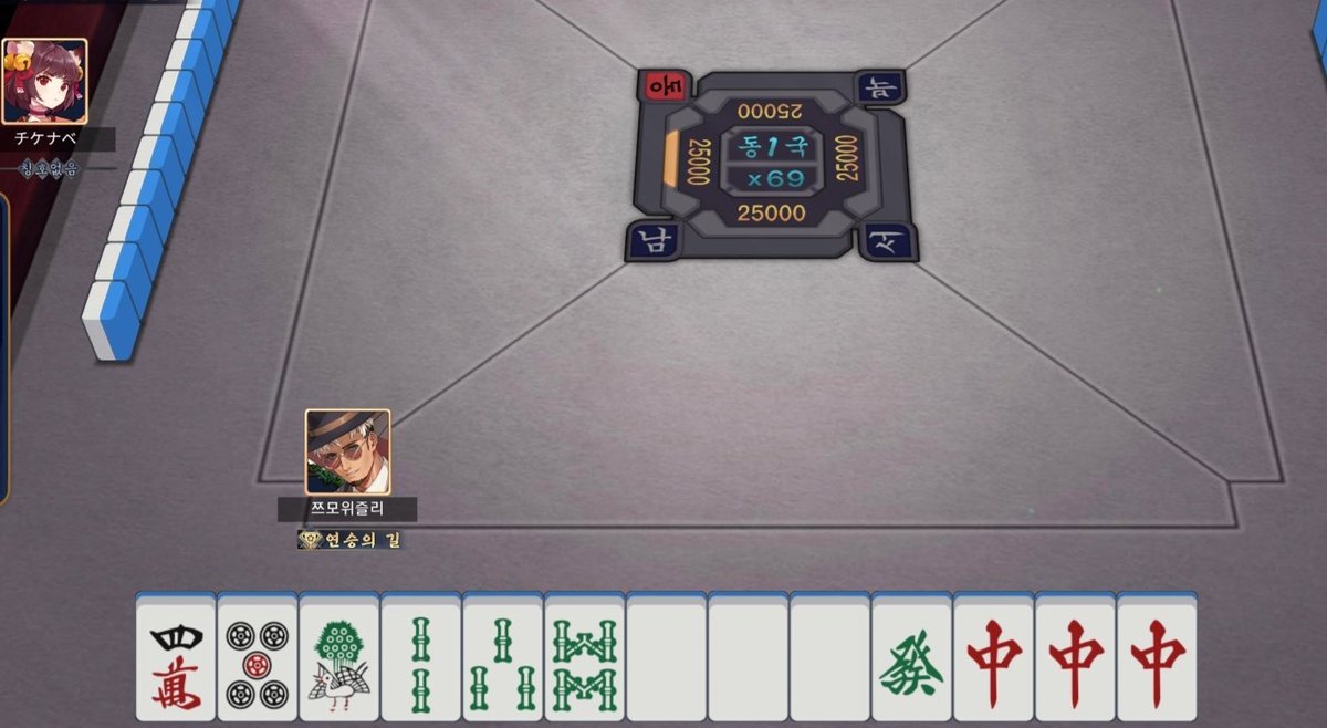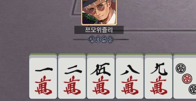 상대 오름패인 자패 내가 쥐고있는 상태로 단기대기 텐파이 됐을때