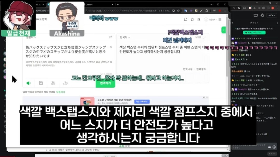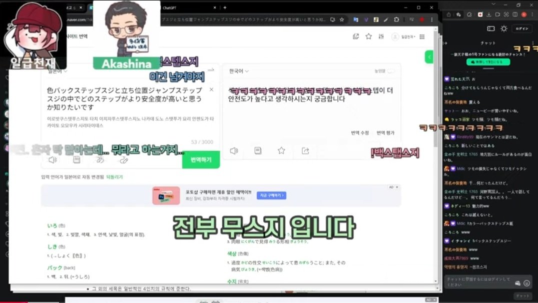 아카시나 프로한테 또라이질문 하는데 젠부 무스지데스 하고 칼같이 쳐내는거 너무 웃겨서 미칠거같음