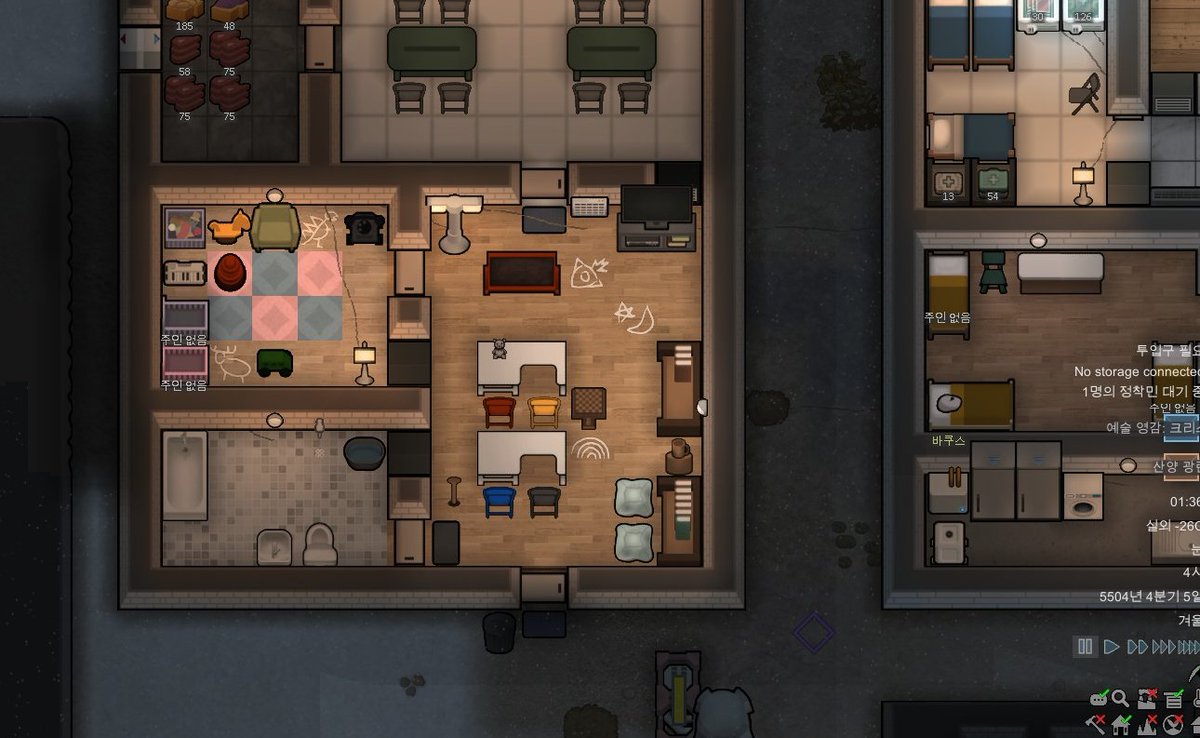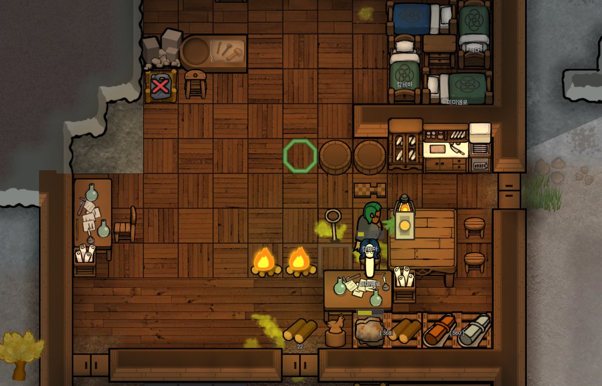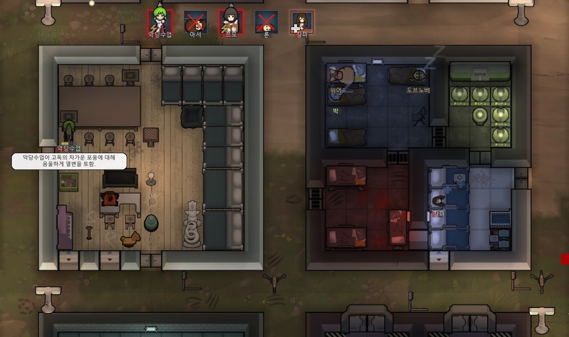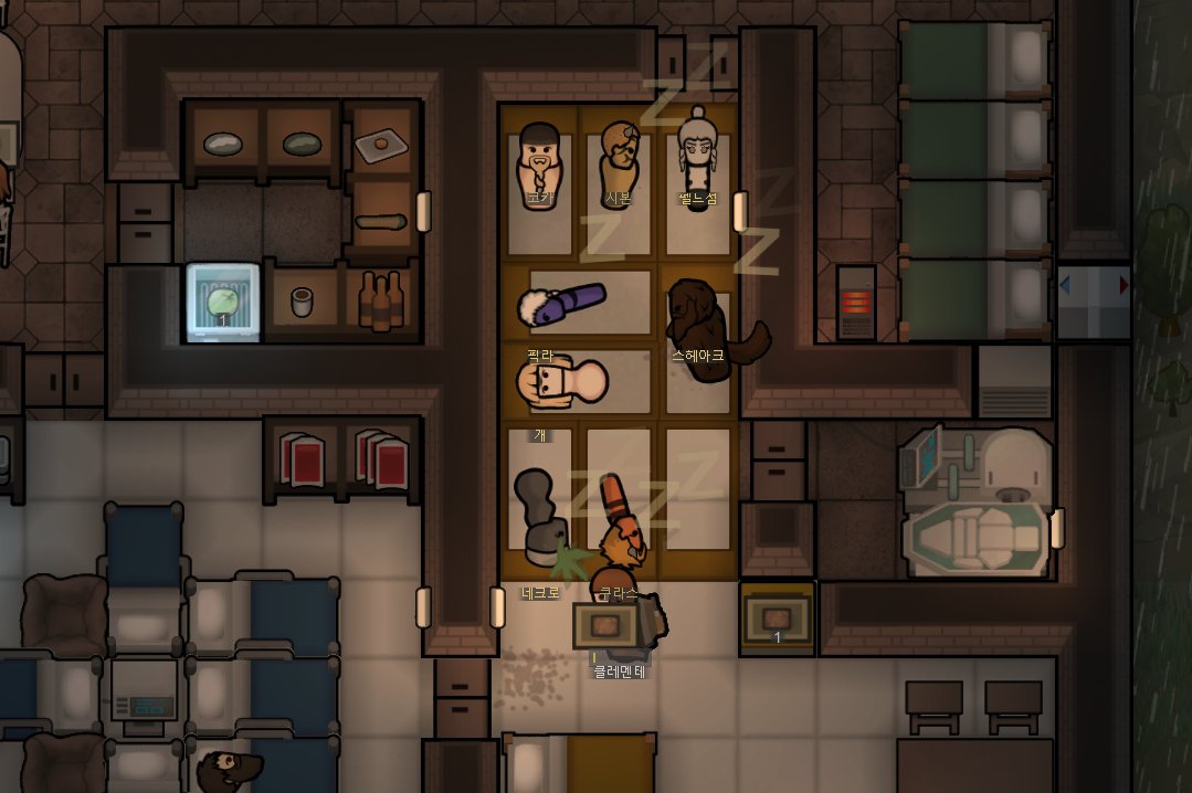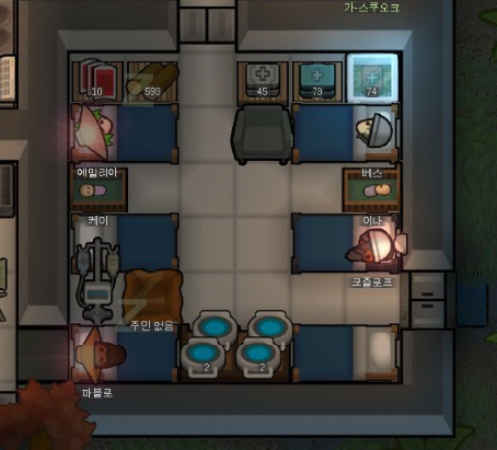 유일한 요리사 림이 퀘스트땜에 집 비워서 레벨 3짜리한테 조리 맡겨놨더니 정착민 전원 식중독걸려서 집에 노란장판 깔림 구와아아악