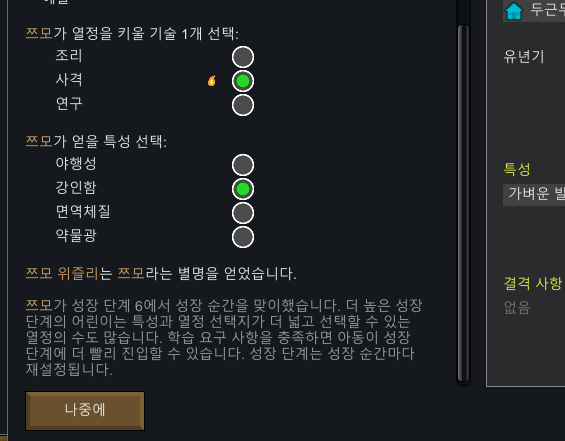 하필 우리 정착지도 먹고살기 팍팍한 상황이라 이유식 만들어주는건 꿈도 못꿈. 만들 수 있는 재료도 없음