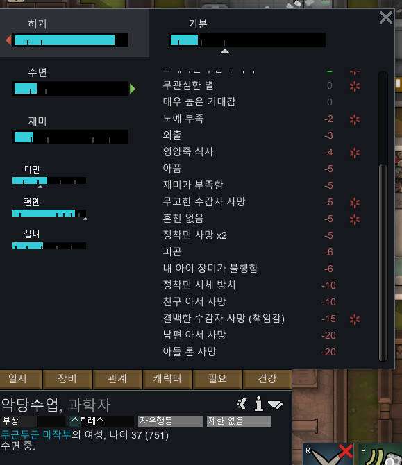 정착민들한테 이런 무드디버프가 뜸