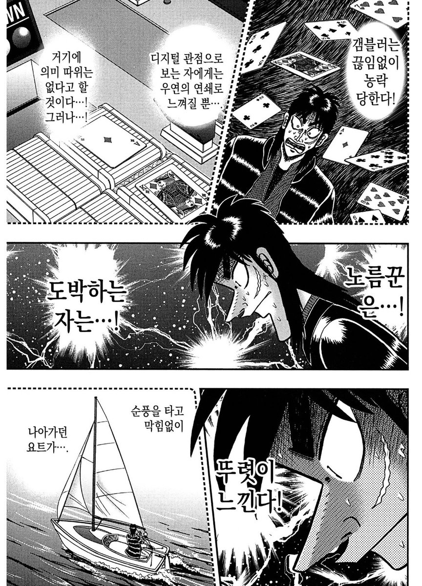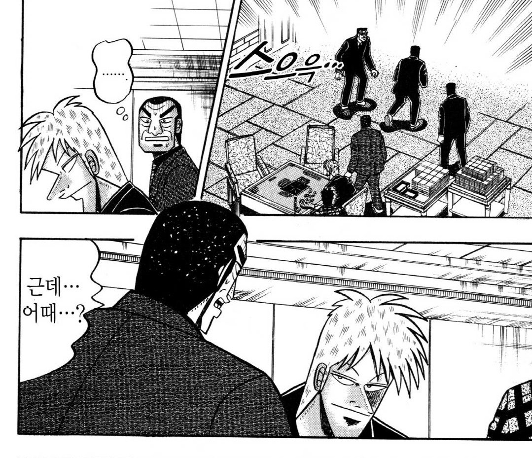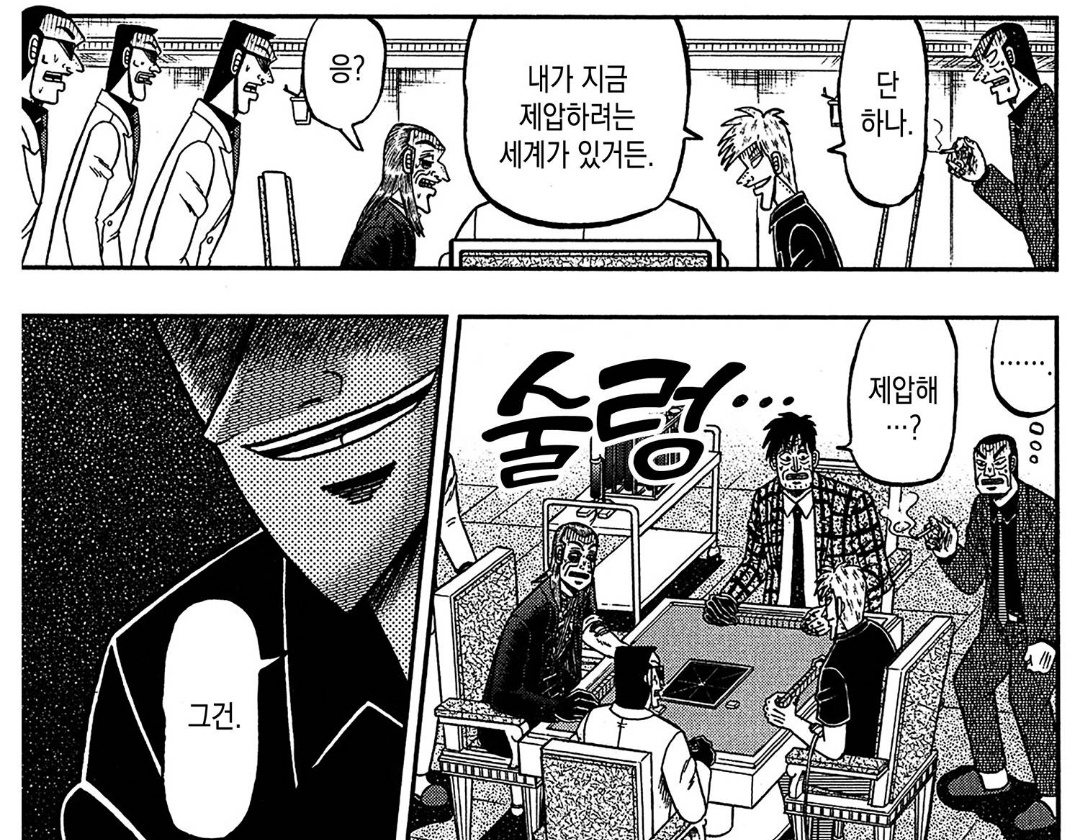 솔직히 목숨이 왔다갔다하는 도박만화는 엄숙한 마음으로 읽을 수 있는데 텐 동서대전은 좋게 봐줘도 보드게임좋아하는 아저씨들의 치열한 사투여서