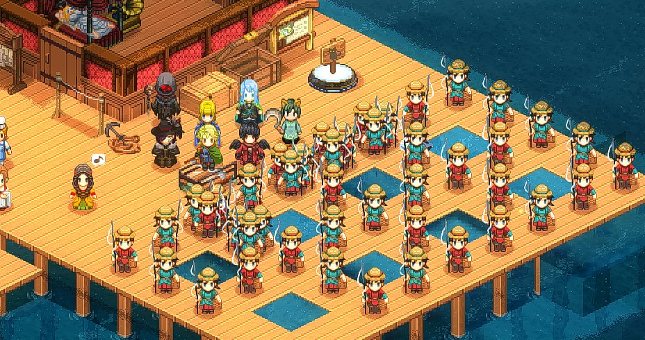 낚시꾼 NPC를 물 근처에 두면 플레이어처럼 혼자 낚시를 해서 물고기를 건져올리곤 하는데
