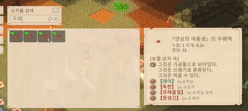 제대로 습득된 상태일 경우에는 이렇게 소지품 검색을 통해 찾을 수 있다.