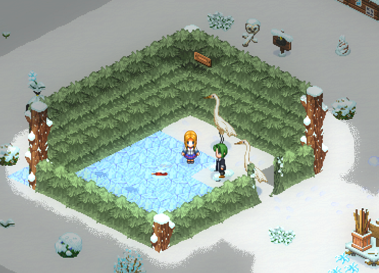 기본적으로 들판에는 낚시를 할 수 있는 연못이 있지만, 겨울이 되면 이것이 얼어붙어서 낚시를 할 수 없게 된다⋯