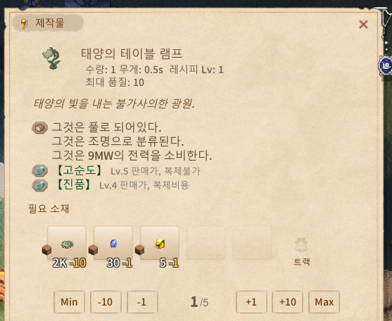 『기계공의 작업대』 에서 만들 수 있는 『태양의 테이블 램프』
